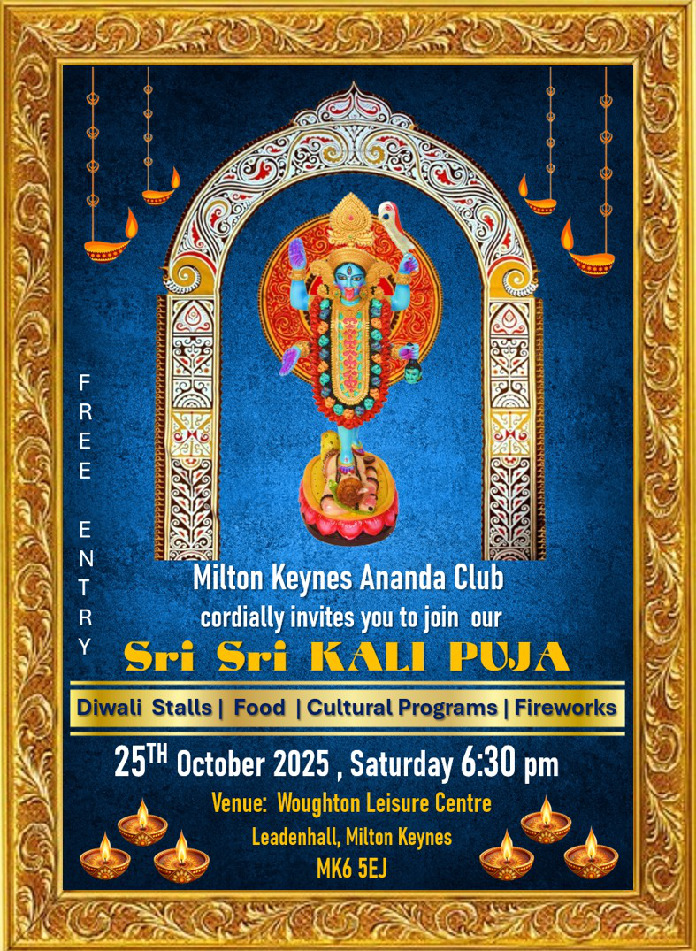 11:00 a.m. – 4:30 p.m. Puja, Bhog, Prasad & Cultural events.
